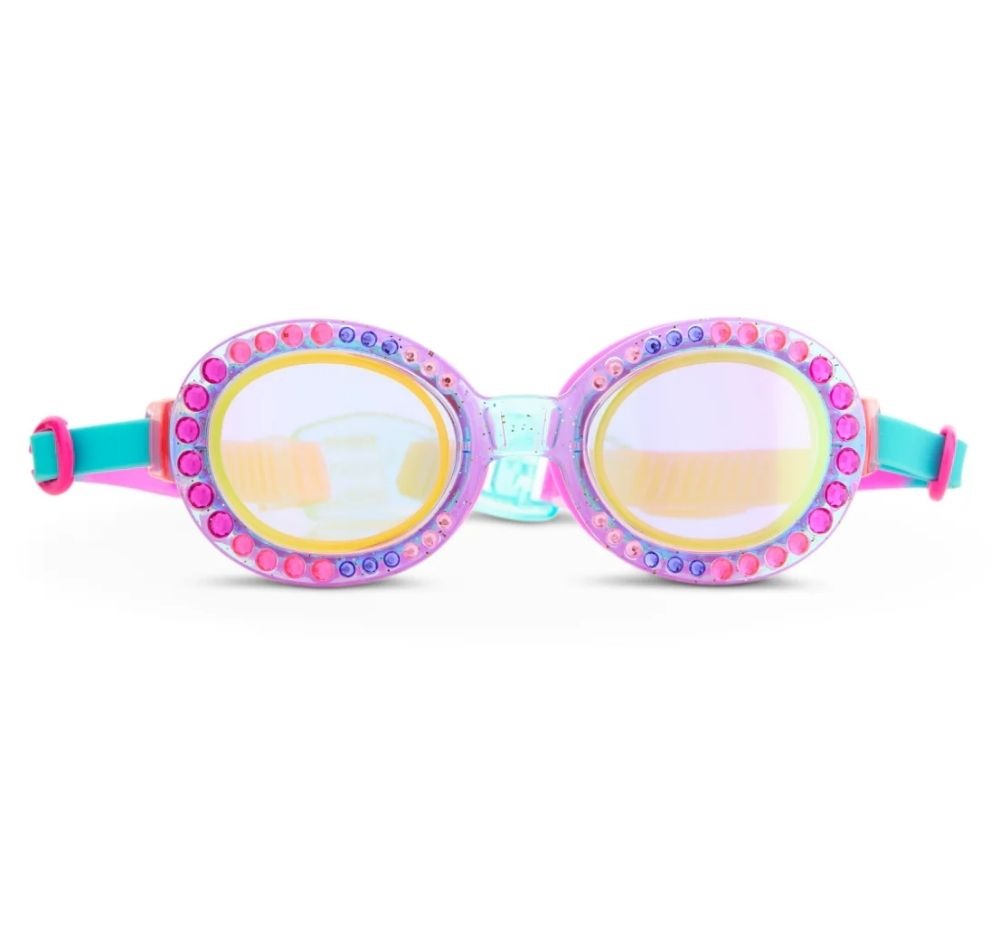 Brilla y salpica este verano con las gafas de natación Bedazzled Blue, diseñadas para niños a partir de 6 años. Con una nueva montura redonda con purpurina, este deslumbrante diseño es una versión actualizada de nuestras famosas gafas de natación con pedrería, ofreciendo aún más glamour y brillo. Adornadas con un juego completo de pedrería clásica y con un clip trasero fácil de poner, estas gafas garantizan un ajuste seguro y sin tirones para nadar con estilo y sin esfuerzo.