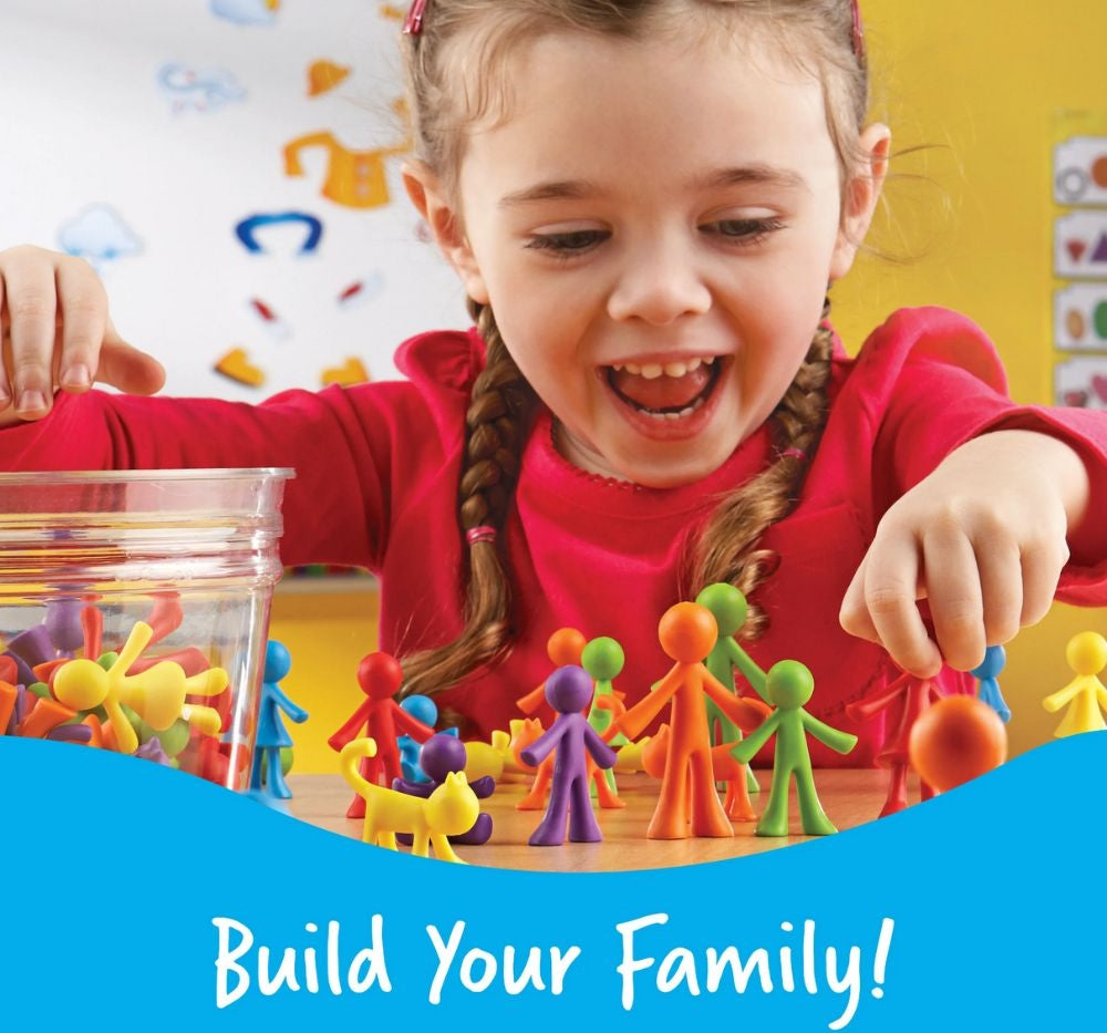 Conoce una verdadera familia de manipuladores multitarea! Ayuda a los niños pequeños a aprender todo sobre ellos mismos y sus familias. Este divertido y colorido juego también es ideal para contar, clasificar, establecer relaciones entre números y calidades y crear patrones. Perfecto para combinar con el popular tema del aula "Todo sobre mí". El juego de 72 fichas viene en 6 formas y colores diferentes para representar a las personas y mascotas de las familias.