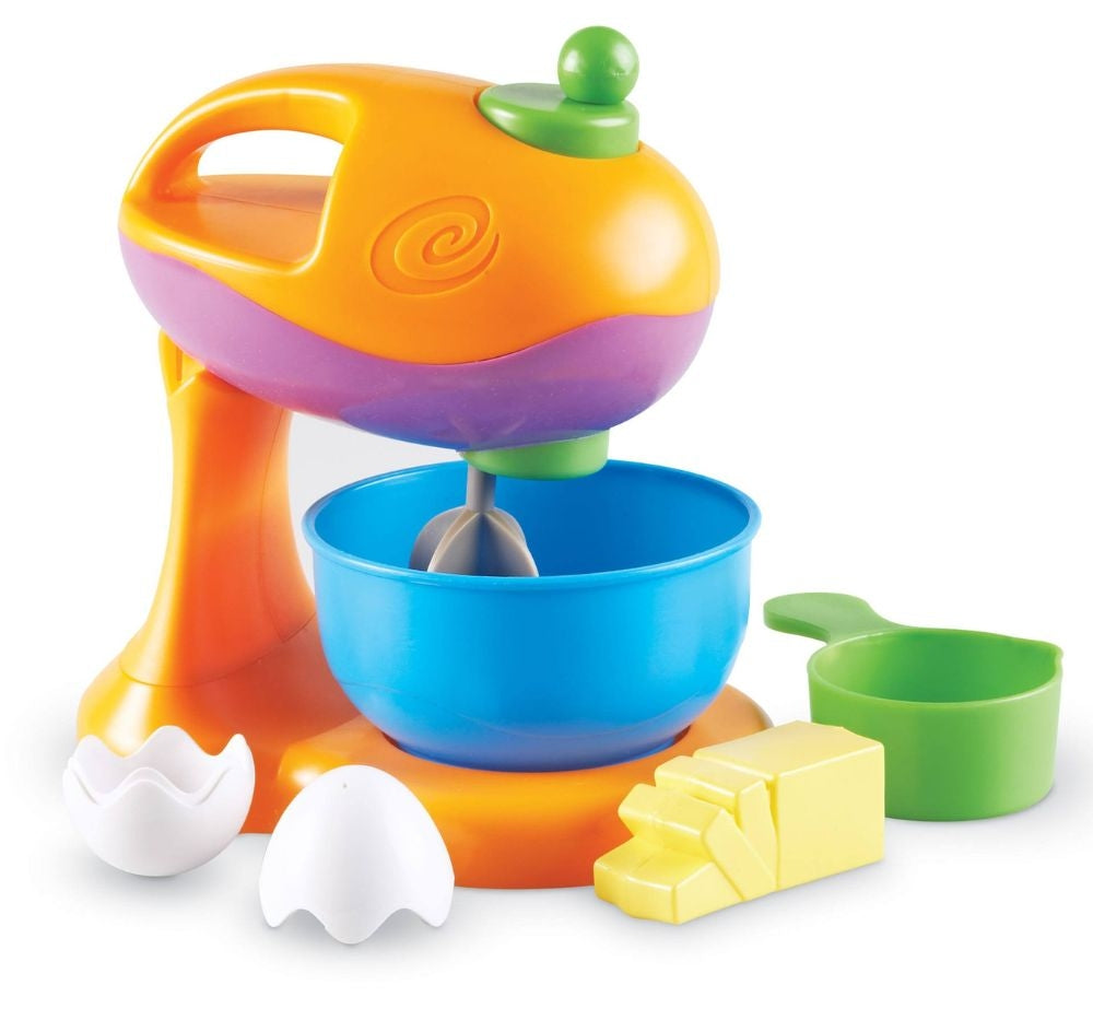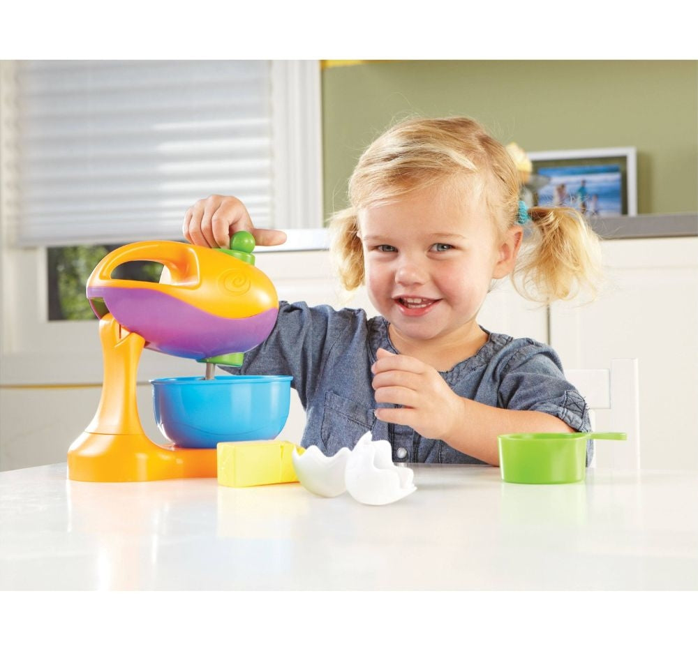 Combine el aprendizaje y el juego con este imaginativo juego de roles. Con el tamaño perfecto para las manos más pequeñas, Mix it! El juego está hecho de plástico resistente al aplastamiento que durará años. Las piezas brillantes y atractivas incluyen todos los ingredientes para crear infinitas recetas divertidas. Incluso viene con un batidor que realmente gira! A tus pequeños panaderos les encantará!