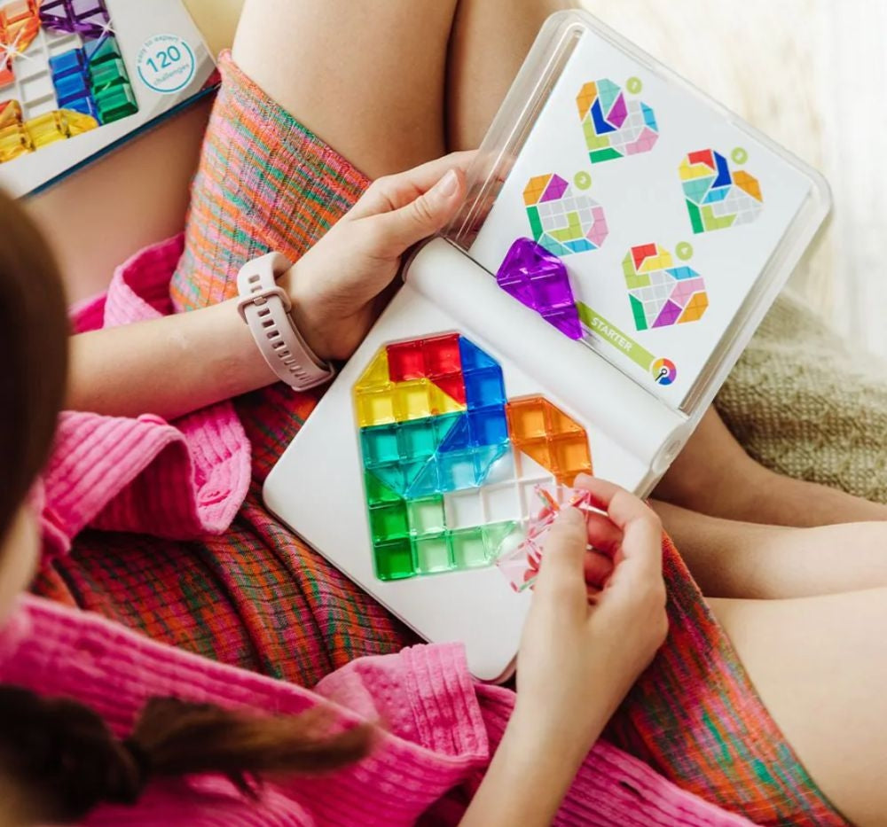 Este juego de rompecabezas apto para viajes viene con un tablero de juego de doble cara y 120 desafíos... para una relación prolongada!