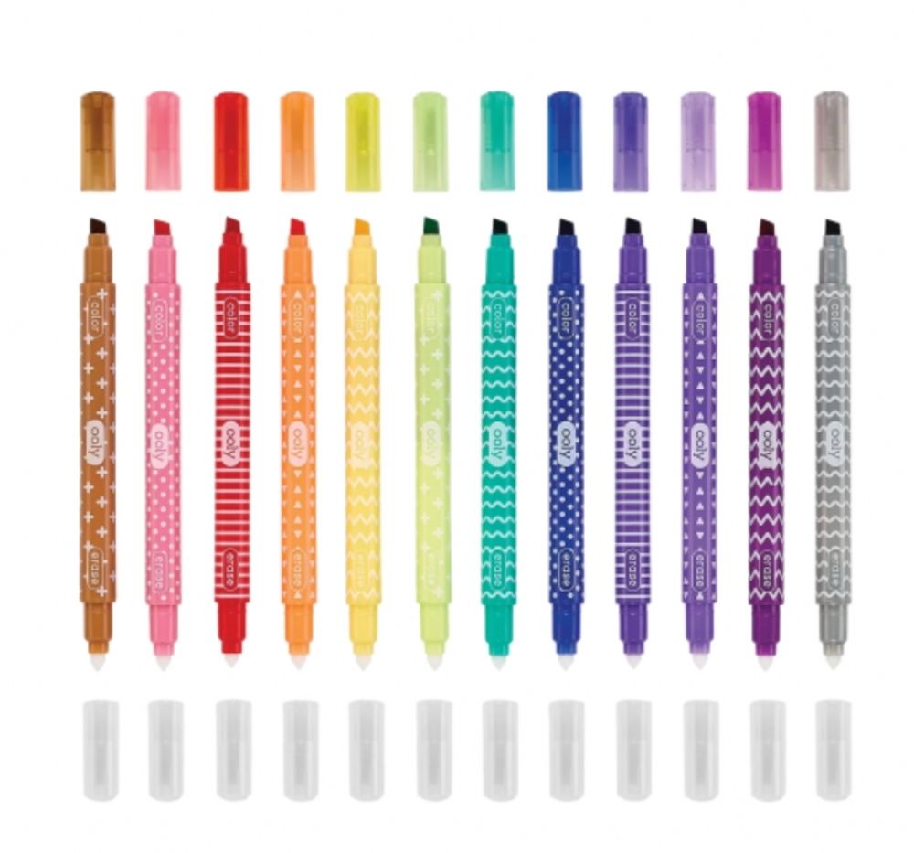 ¡Evita errores en tu arte con los marcadores borrables Make No Mistake! de OOLY! Este set de 12 marcadores borrables es perfecto para pequeños artistas que disfrutan creando sin preocupaciones. Cada marcador de doble cara tiene una punta biselada de 4 mm para trazos intensos y una punta redonda de 3 mm para detalles finos. ¿Y lo mejor? Si te equivocas, ¡solo dale la vuelta y borra! Estos adorables marcadores te permiten colorear, dibujar y diseñar sin estrés, fomentando la creatividad con cada trazo. Y si de verdad quieres ser creativo, ¡puedes usar el borrador para crear diseños con espacio negativo!