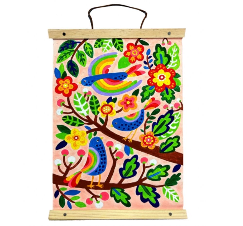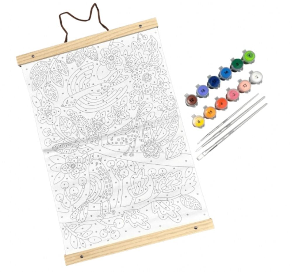 ¿Crees que no puedes crear una obra maestra llena de color? ¡Piénsalo de nuevo! Con este kit de pintura por números para adultos, ¡tú también puedes aprender a pintar! Este set de pintura acrílica tiene todo lo que necesitas de principio a fin: 12 botes de pintura, 3 pinceles, una hoja de instrucciones e incluso el marco, los tornillos y el cordón para colgar tu obra terminada. El diseño es una alegre imagen de tres pájaros disfrutando de una tarde en ramas de colores. ¡Consigue algunos de estos kits de pintura por números y organiza una fiesta de pintura con tus amigos, o regala a esa persona especial este kit de lienzo y observa cómo disfruta de la alegría de pintar!