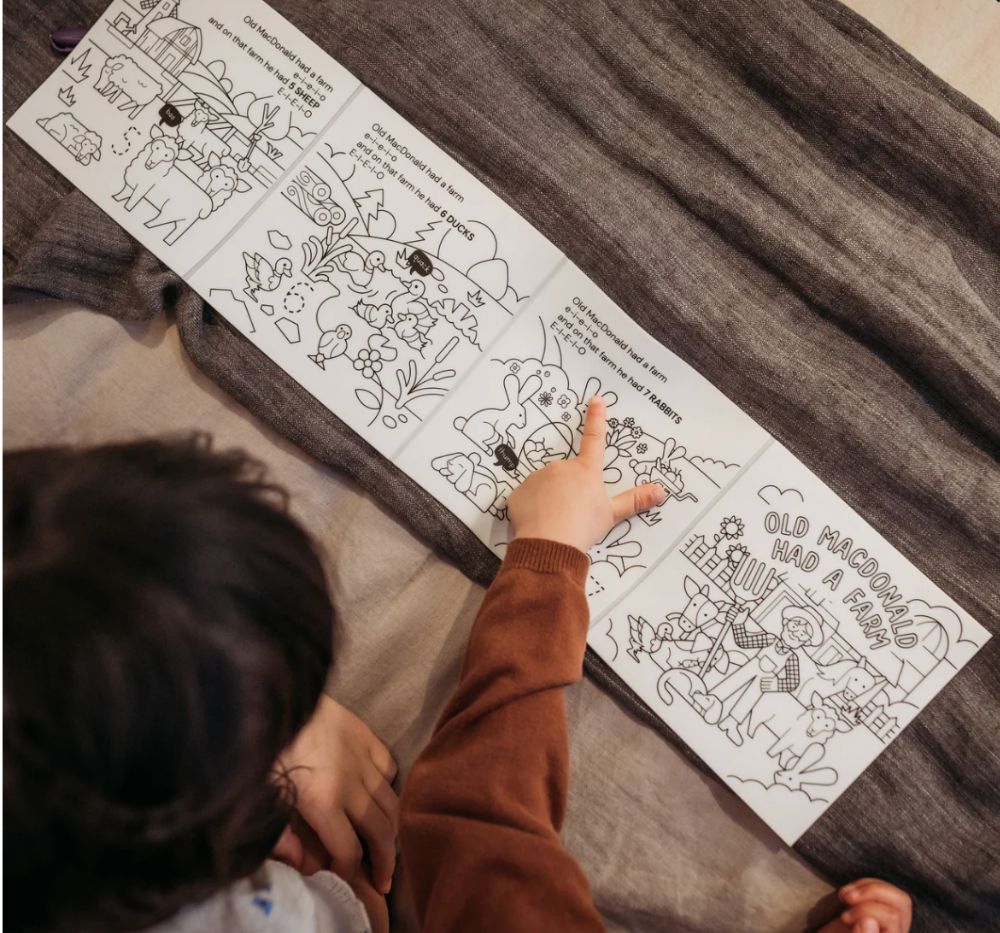 ¡Canta con la canción " El Viejo MacDonald Tenía una Granja" con este libro de actividades reutilizable y lavable de HeyDoodle!