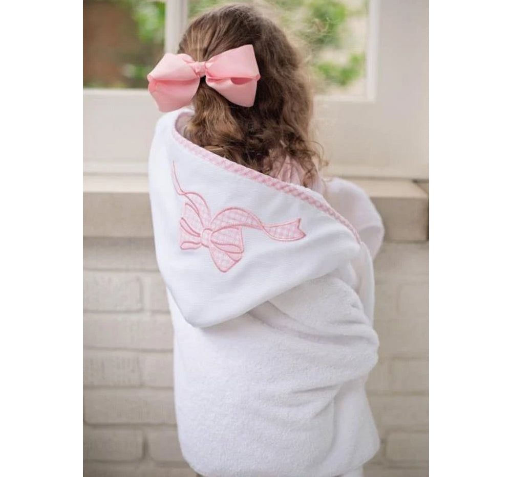 Toalla con una gorra con forro de felpa, que está cosida a un lado largo de la toalla y está adornada con uno de los apliques exclusivos de la marca. Perfecto para el baño, la playa o la alberca; cada toalla viene lista para regalar, enrollada y envuelta con un moño.