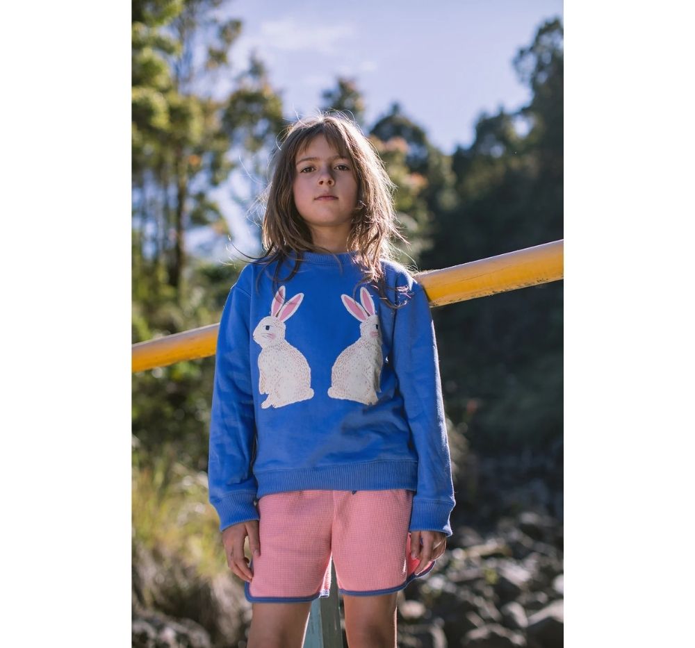 Short deportivo infantil en tela waffle color palo rosa con ribetes y cordón azul marino. Cómodo y ligero, ideal para niñas y niños en días cálidos, actividades al aire libre, juegos o deportes. Cuenta con cintura elástica ajustable con cordón y prácticos bolsillos laterales. Perfecto como short casual, short para verano o short deportivo infantil.