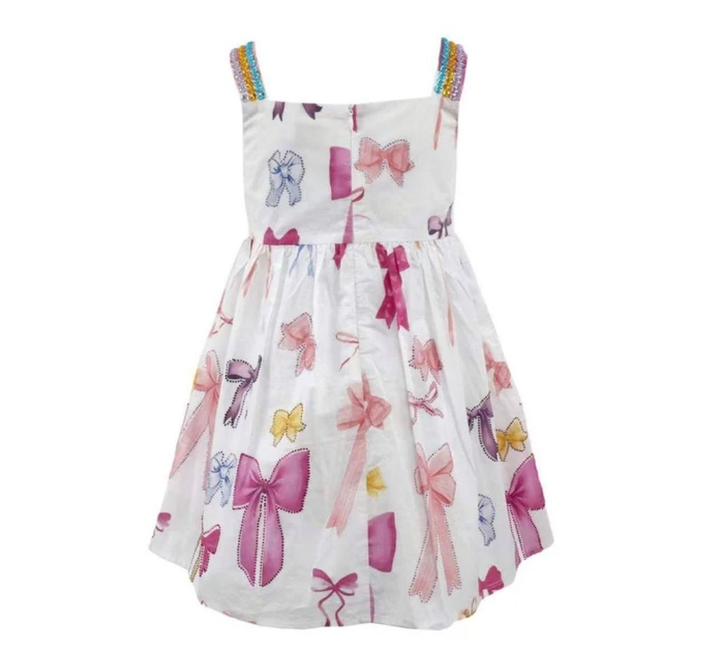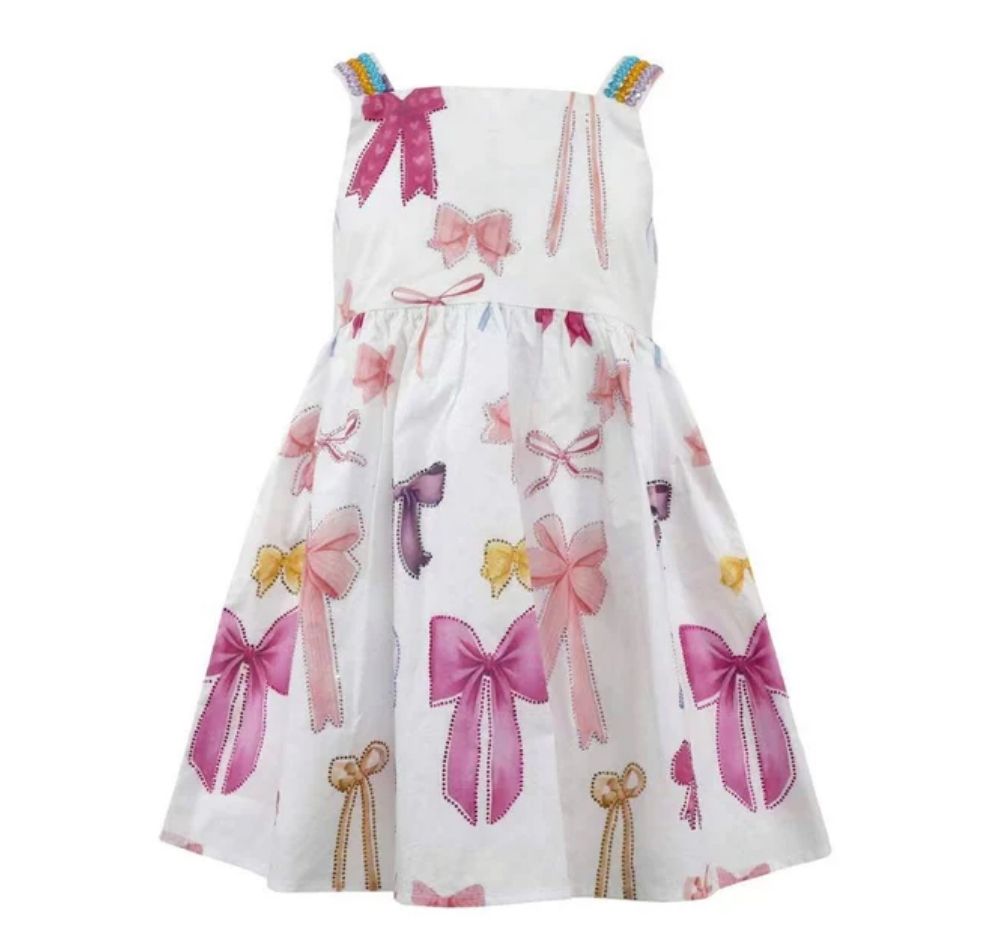 Vestido Pretty Bows Sparkle Dress de Lola And The Boys: un vestido encantador para niñas que combina feminidad y brillo sutil. Presenta un corte cómodo y delicado, con lazo(s) decorativo(s) en el delantero y detalles con brillo que añaden un toque festivo sin perder la ternura. Ideal para celebraciones, sesiones de fotos o para vestir bonito en el día a día.