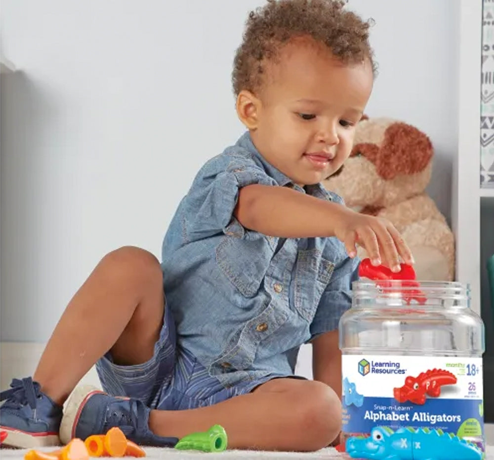 Combinar letras mayúsculas y minúsculas es muy fácil con estos caimanes de dos piezas! Cada Cocodrilo codificado por colores está marcado con letras mayúsculas o minúsculas en la cabeza o la cola. Usa el color para ayudar a hacer una combinación alfabética!